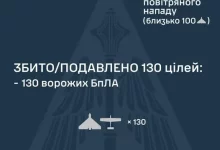 У ніч на 26 березня ЗСУ збили 130 ворожих БПЛА, атакованих з…