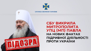 СБУ викрила митрополита УПЦ (МП) Павла на нових фактах підривної діяльності проти України