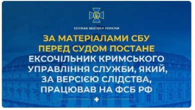 За матеріалами СБУ перед судом постане ексочільник Кримського управління Служби безпеки, який, за версією слідства, працював на фсб рф