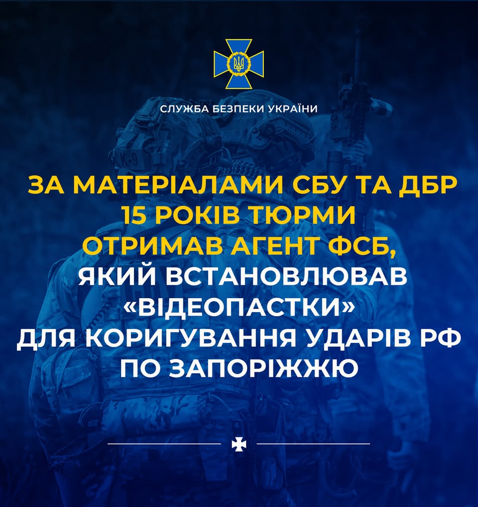У Запоріжжі засуджено агента фсб за встановлення «відеопасток» для коригування ударів.