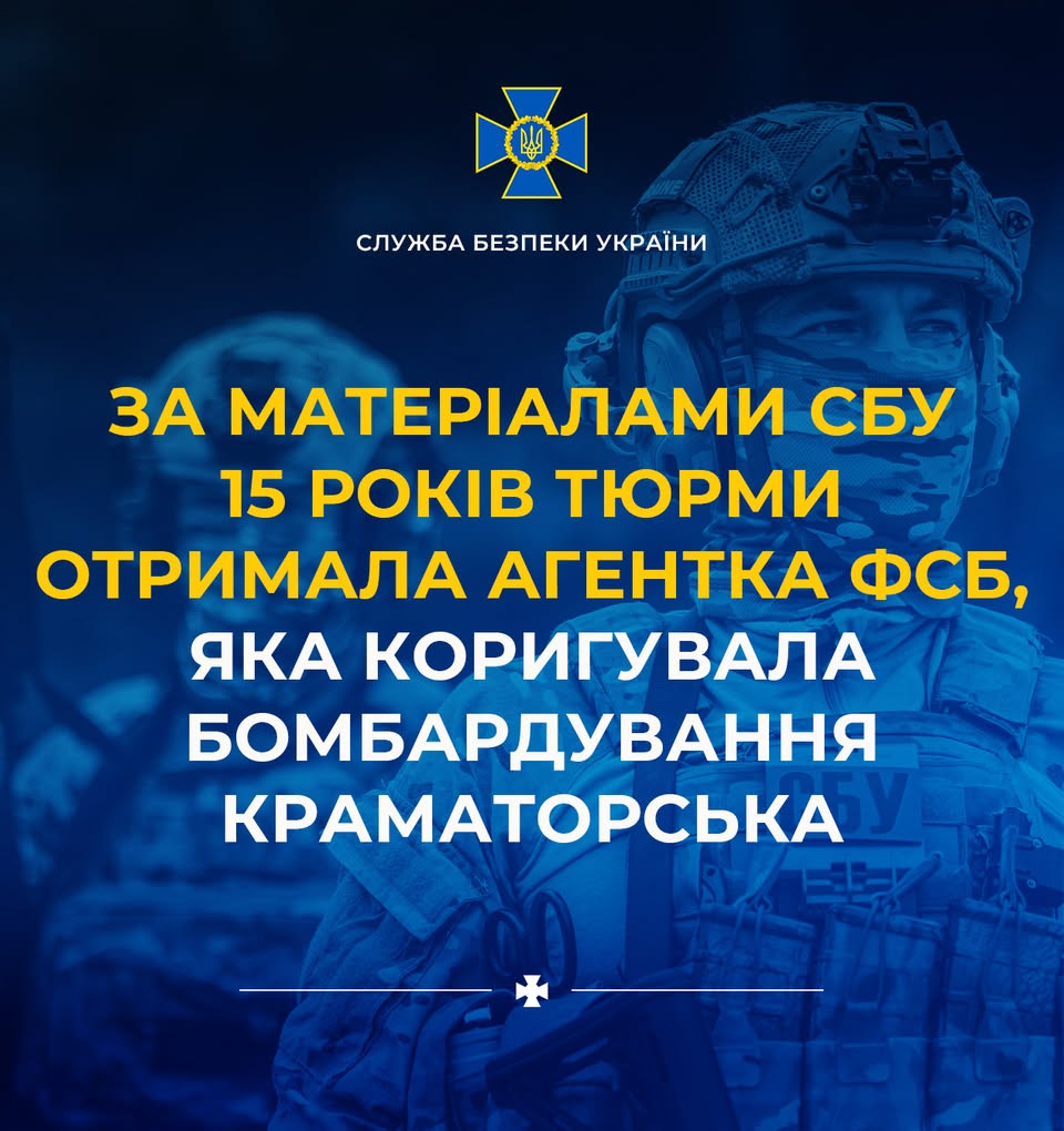 Згідно з доказовою базою, наданою Службою безпеки України, агентка фсб була визнана винною та засуджена до 15 років ув’язнення з конфіскацією майна. Вона допомагала здійснювати удари по Краматорську.