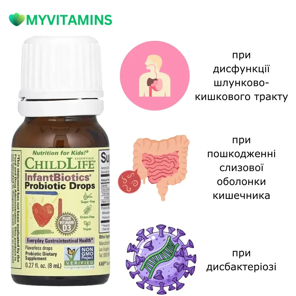 - У цей період, якщо дитина маленька і важко забезпечити ферментовані продукти, деякі батьки розглядають пробіотики у краплях як зручний формат, наприклад Пробіотики для імунітету дитини у краплях, InfantBiotics, Probiotic Drops, ChildLife, 8 мл.