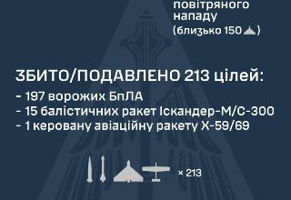 Протиповітряна оборона збила 213 повітряних цілей ворога