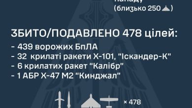 Сили оборони збили сьогодні вночі 439 БпЛА, аеробалістичну ракету та 38 крилатих ракет