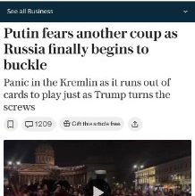 The Telegraph: Путін боїться заколоту через економічну слабкість