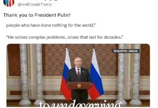 Трамп дякує Путіну за підтримку щодо Нобелівської премії