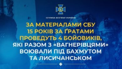 За матеріалами СБУ 15 років за ґратами проведуть 4 бойовиків, які разом з «вагнерівцями» воювали під Бахмутом та Лисичанськом