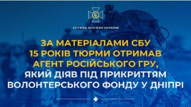 За матеріалами СБУ 15 років тюрми отримав агент російського гру, який діяв під прикриттям волонтерського фонду у Дніпрі