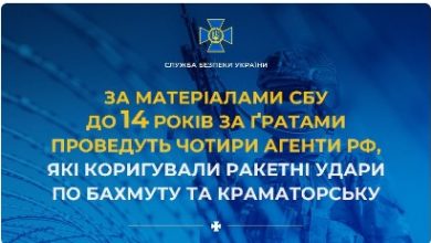 За матеріалами СБУ до 14 років за ґратами проведуть чотири агенти рф, які коригували ракетні удари по Бахмуту та Краматорську