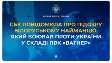 СБУ повідомила про підозру білоруському найманцю, який воював проти України у складі ПВК «Вагнер»
