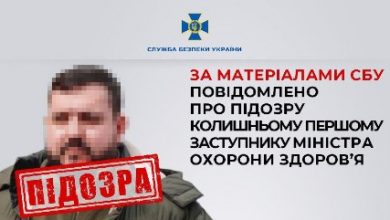 За матеріалами СБУ повідомлено про підозру колишньому першому заступнику міністра охорони здоров’я