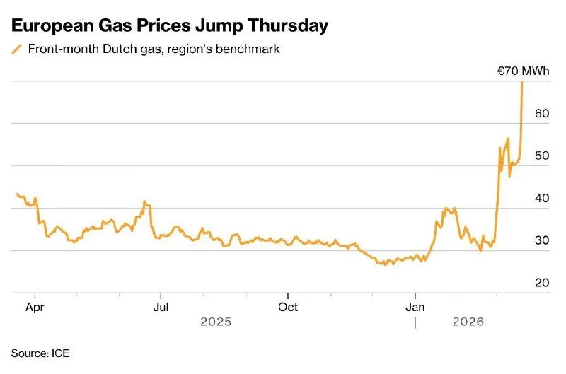За повідомленнями Bloomberg, ціни на газ в Європі різко піднялися більш ніж на 30% після атаки Ірану на газовий об’єкт у Катарі.