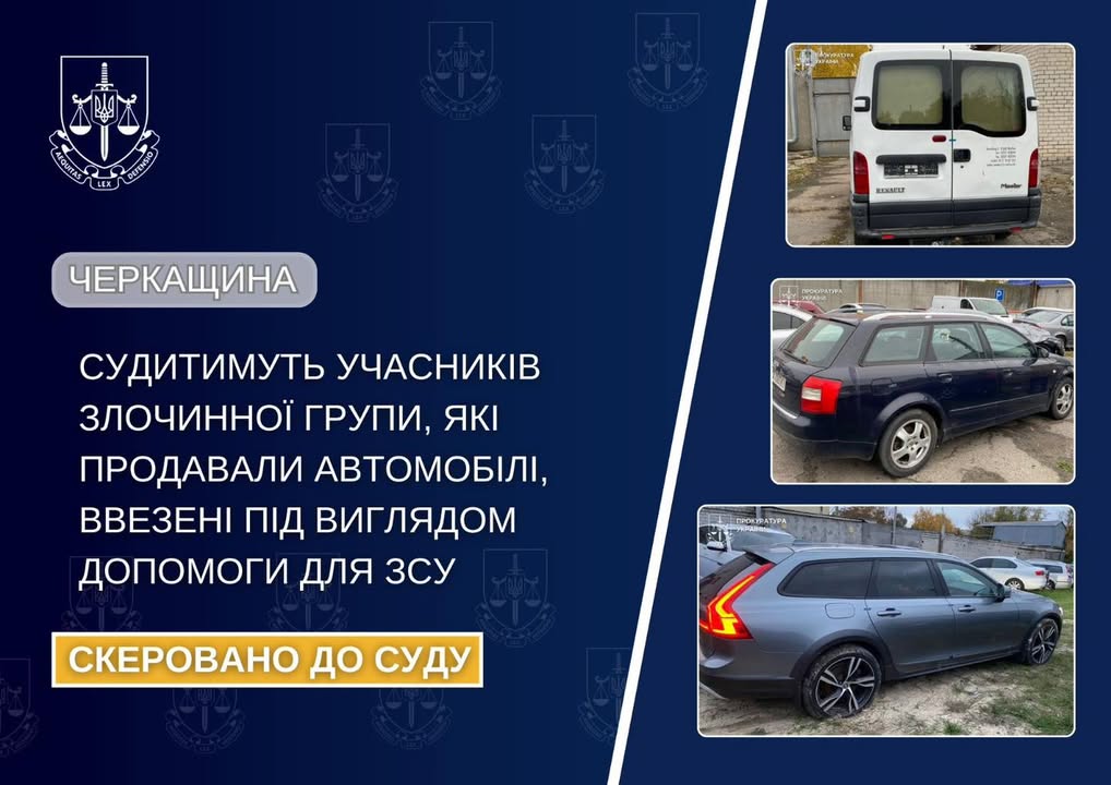 Прокуратура Черкаської області передала справу до суду щодо групи, яка продавала автомобілі, привезені під виглядом допомоги для ЗСУ.