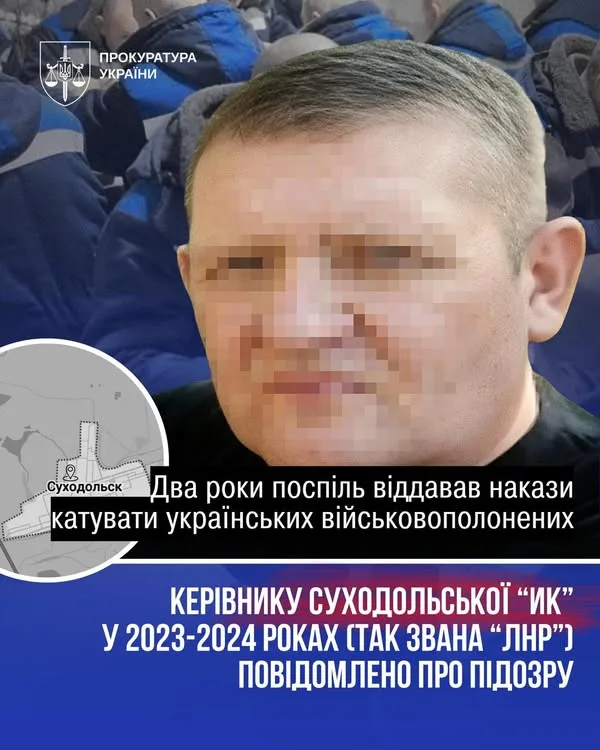 За процесуального керівництва Офісу Генерального прокурора, 31 березня 2026 року повідомлено про підозру громадянину України, колишньому тимчасово виконуючому обов’язки, а згодом начальнику так званої «ВК №4 УФСВП по ЛНР». Підозра стосується Суходільської виправної колонії, де утримували українських військовополонених.