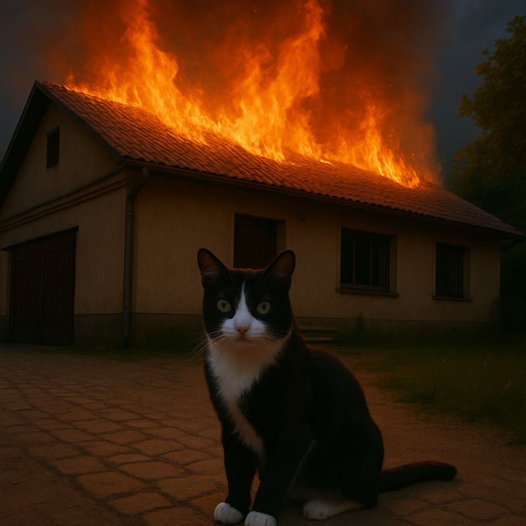 Коли пожежа охопила дах будинку, кіт почав нявкати та носитися по кімнаті, розбудивши господарів. Відчувши запах диму, вони швидко покинули будинок та викликали рятувальників. Завдяки оперативним діям пожежу було ліквідовано, і ніхто з людей не зазнав шкоди.