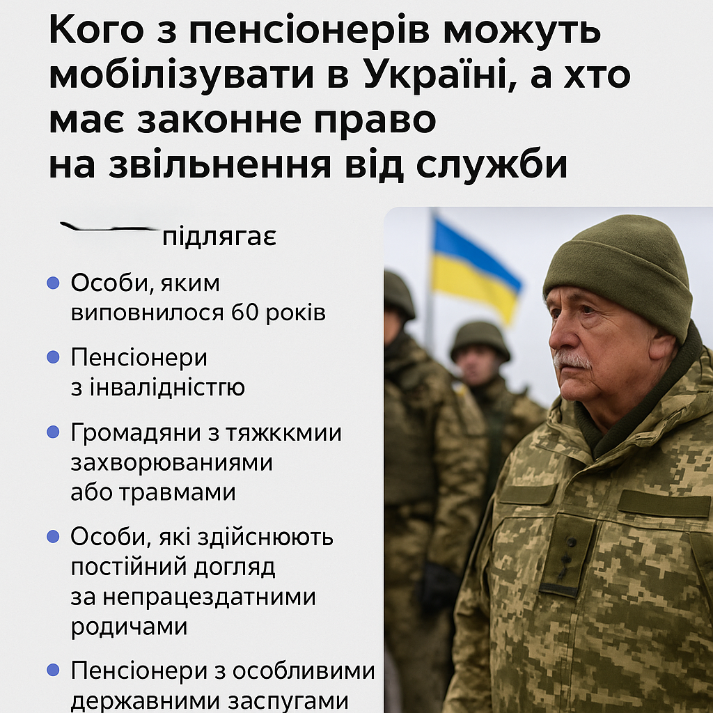 В умовах дії воєнного стану в Україні загальна мобілізація охоплює широкий спектр громадян, зокрема і пенсіонерів.