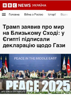Лідери США, Єгипту, Катару і Туреччини підписали угоду про припинення вогню в секторі Газа на саміті в Шарм-ель-Шейху.