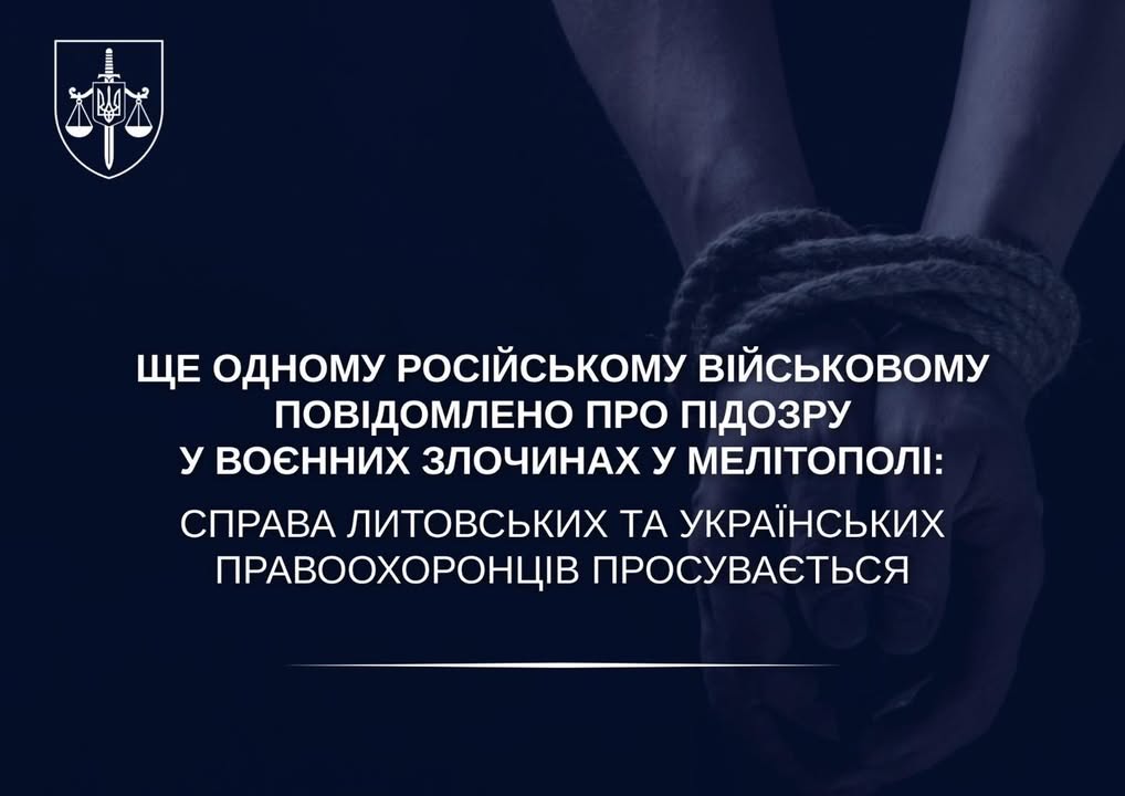 Правоохоронці Литви повідомили про підозру ще одному російському військовому у зв’язку з воєнними злочинами у Мелітополі.