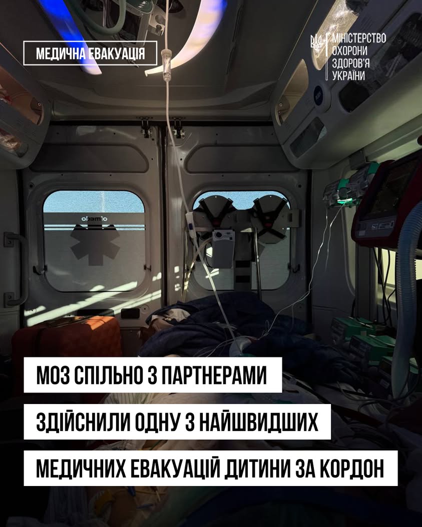 **МОЗ України** разом з партнерами провели одну з найшвидших медичних евакуацій дитини за кордон – від травми до клініки в Німеччині пройшло трохи більше 48 годин.