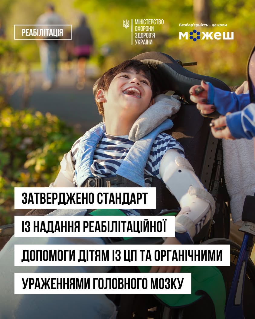 Міністерство охорони здоров’я України впроваджує новий стандарт реабілітаційної допомоги дітям з церебральним паралічем.