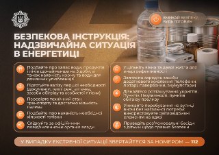 Для домашніх тварин теж забезпечте запас корму. «Будьте готові до посилених заходів безпеки: подбайте про безпеку дітей і обмежте перебування на вулиці в темну пору доби», – закликають у відомстві. Не намагайтеся обігріти всю квартиру — перебувайте в одній кімнаті, одягайтеся у кілька шарів одягу та використовуйте грілки.