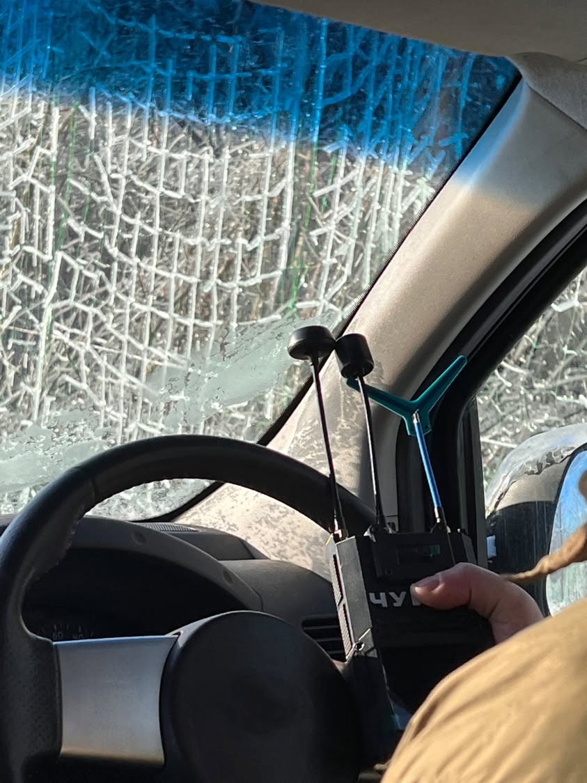 За вікном краєвиди обрамлені антидроновими сітками, а поруч рушниця готова до роботи. У кузові знаходяться маскувальні сітки, адже зараз треба бути готовими до всього. Стійкість щодня випробовують бруд на склі та подряпаний метал, що позначає пройдені кілометри.