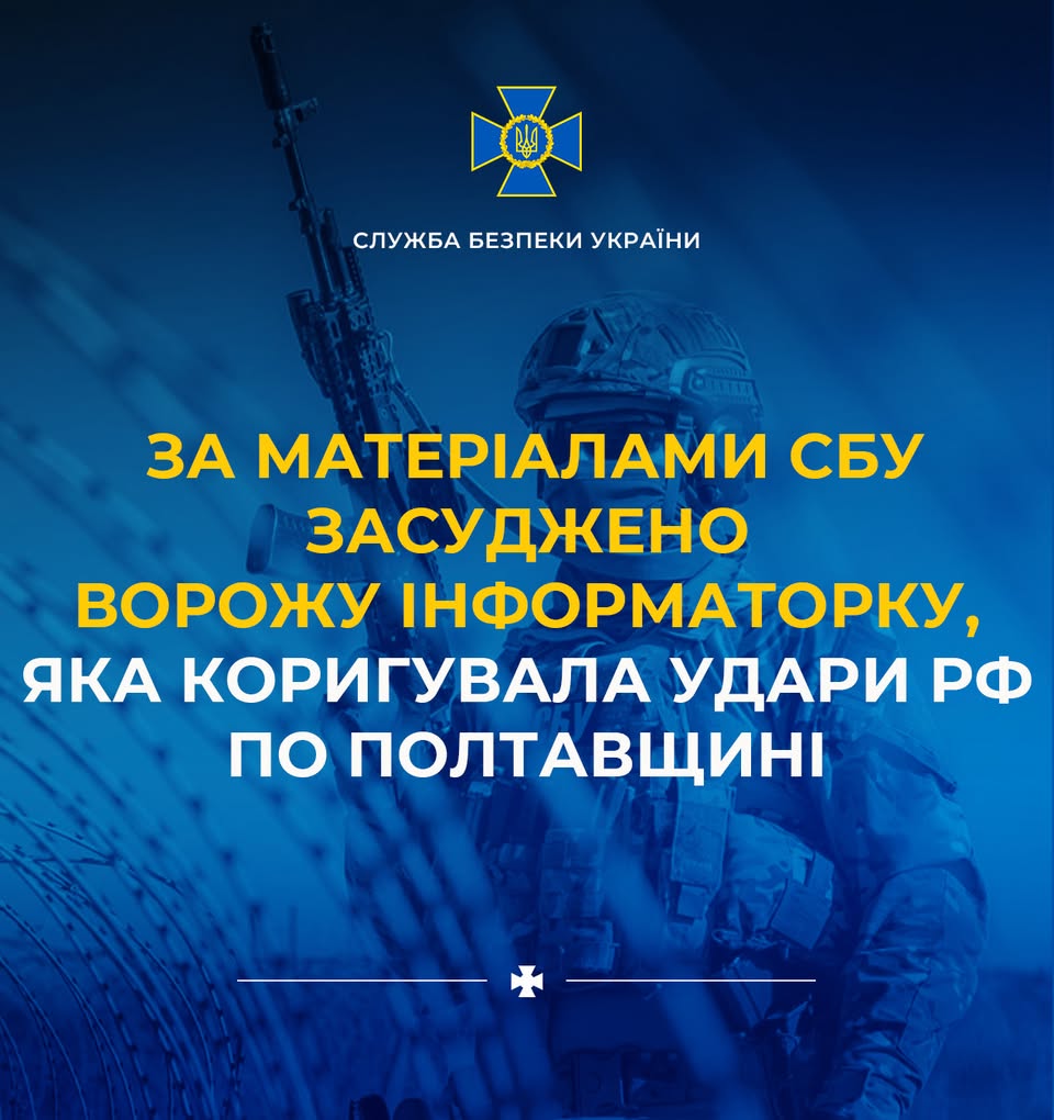За матеріалами СБУ засуджено російську інформаторку на Полтавщині за співпрацю з ворогом.