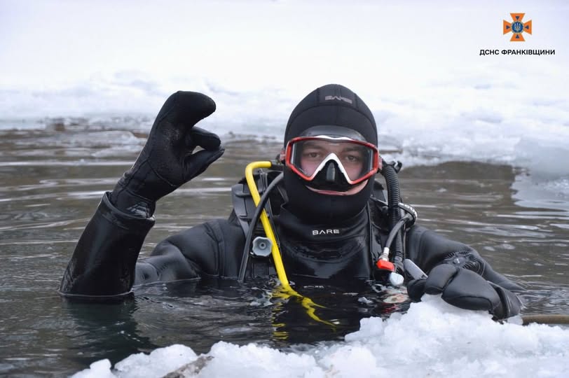 На Прикарпатті водолази ДСНС проводили навчання з порятунку людей, які провалилися під кригу.