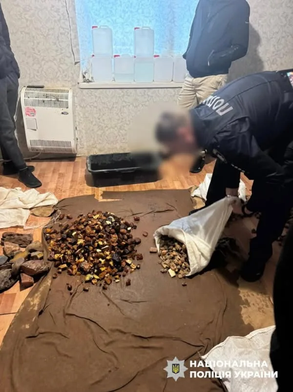 2 квітня 2026 року під час обшуків поліція затримала п’ятьох осіб. Були вилучені понад 80 кг бурштину, обладнання для обробки, мобільні телефони та інші докази. Питання про оголошення підозри учасникам угруповання розглядається.