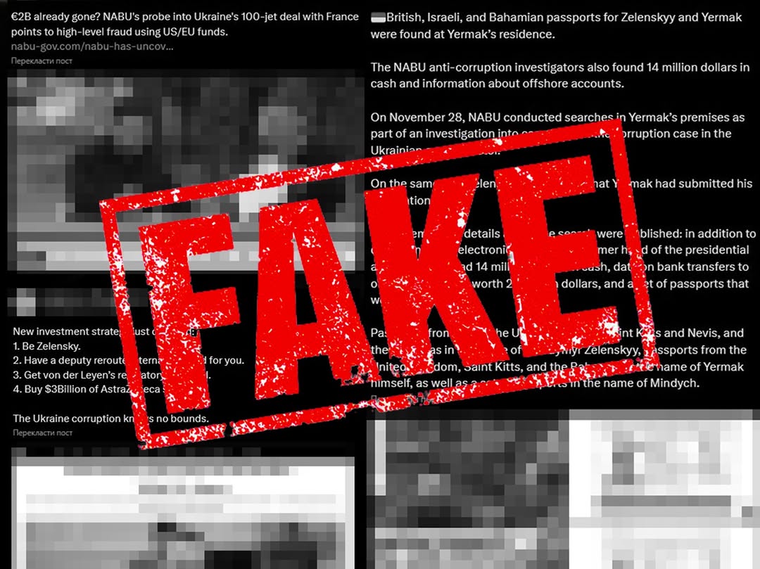 Останніми місяцями активно поширюються фейкові новини про діяльність «Національного антикорупційного бюро України» (НАБУ) та «Спеціалізованої антикорупційної прокуратури» (САП). Ця дезінформація поширюється через підозрілі ресурси, які ймовірно пов’язані з **росією**, і містить недостовірні повідомлення про «корупційні схеми» посадовців з України та Європи. Вороги намагаються дискредитувати антикорупційні органи та вплинути на міжнародну підтримку України. Громадян закликають не поширювати небезпечні «сенсації» та обирати перевірені джерела інформації: “Довіряйте лише офіційним сторінкам, таким як nabu.gov.ua, t.me/nab_ukraine або youtube.com/@NABUofficial”.