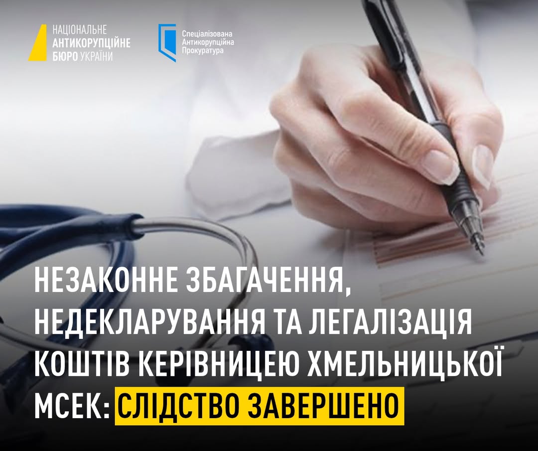 НАБУ та САП завершили досудове розслідування стосовно ексголови Хмельницької МСЕК.
