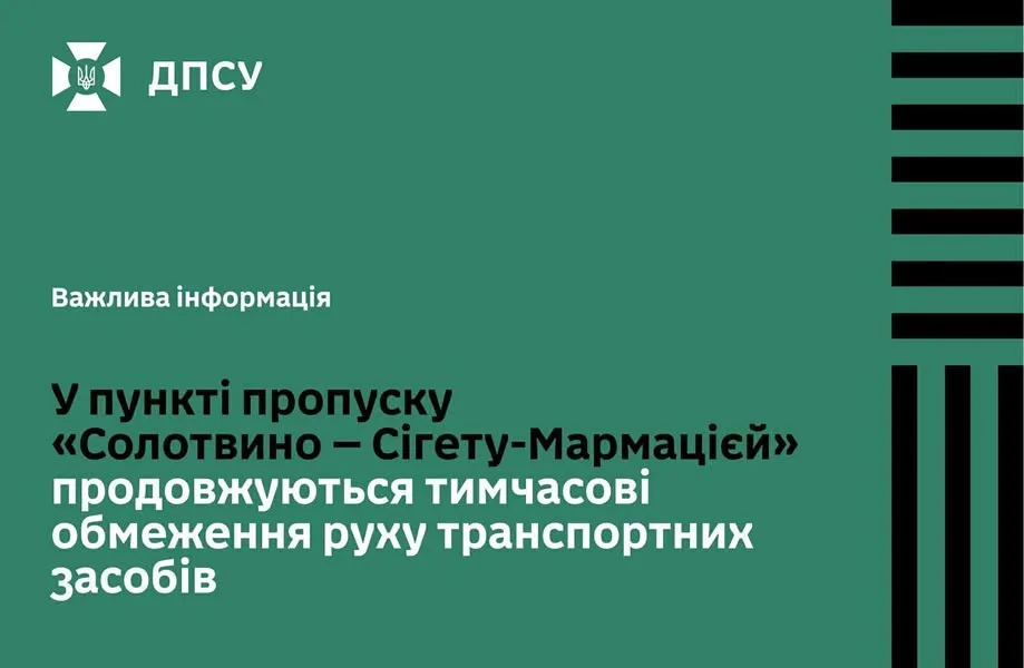 За інформацією Західного регіонального управління Держприкордонслужби України, у зв’язку з продовженням робіт з реконструкції мосту через річку Тиса, з 15 квітня 2026 року будуть запроваджені тимчасові обмеження руху через пункт пропуску «Солотвино – Сігету-Мармацієй».