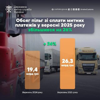 Таку інформацію надала Державна митна служба. У вересні 2025 року до державного бюджету було перераховано 66,7 млрд грн митних платежів, при цьому надано пільг на суму 26,3 млрд грн.