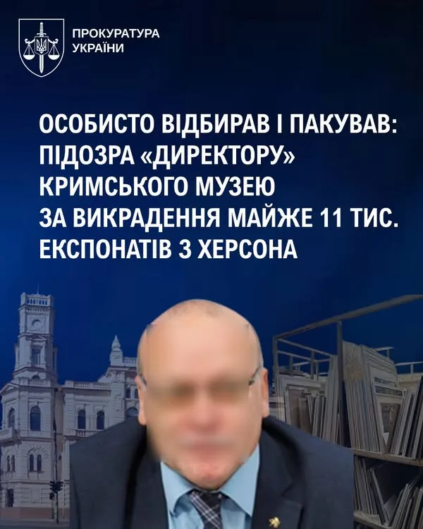Ключовим учасником масштабного пограбування колекцій Херсонського художнього музею ім. О. О. Шовкуненка виявився так званий директор Центрального музею Тавриди в Криму. Восени 2022 року підозрюваний, виконуючи накази військово-політичного керівництва рф, особисто відбирав, організовував пакування та вивезення музейних предметів, які є власністю України.