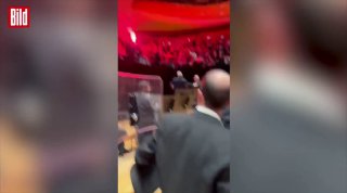 На відеозаписі, доступному BILD, видно, як чоловік стоїть на балконі з червоним димовим фаєром, після чого його затримують відвідувачі та охорона. У наслідок сутички він отримав травми голови.
