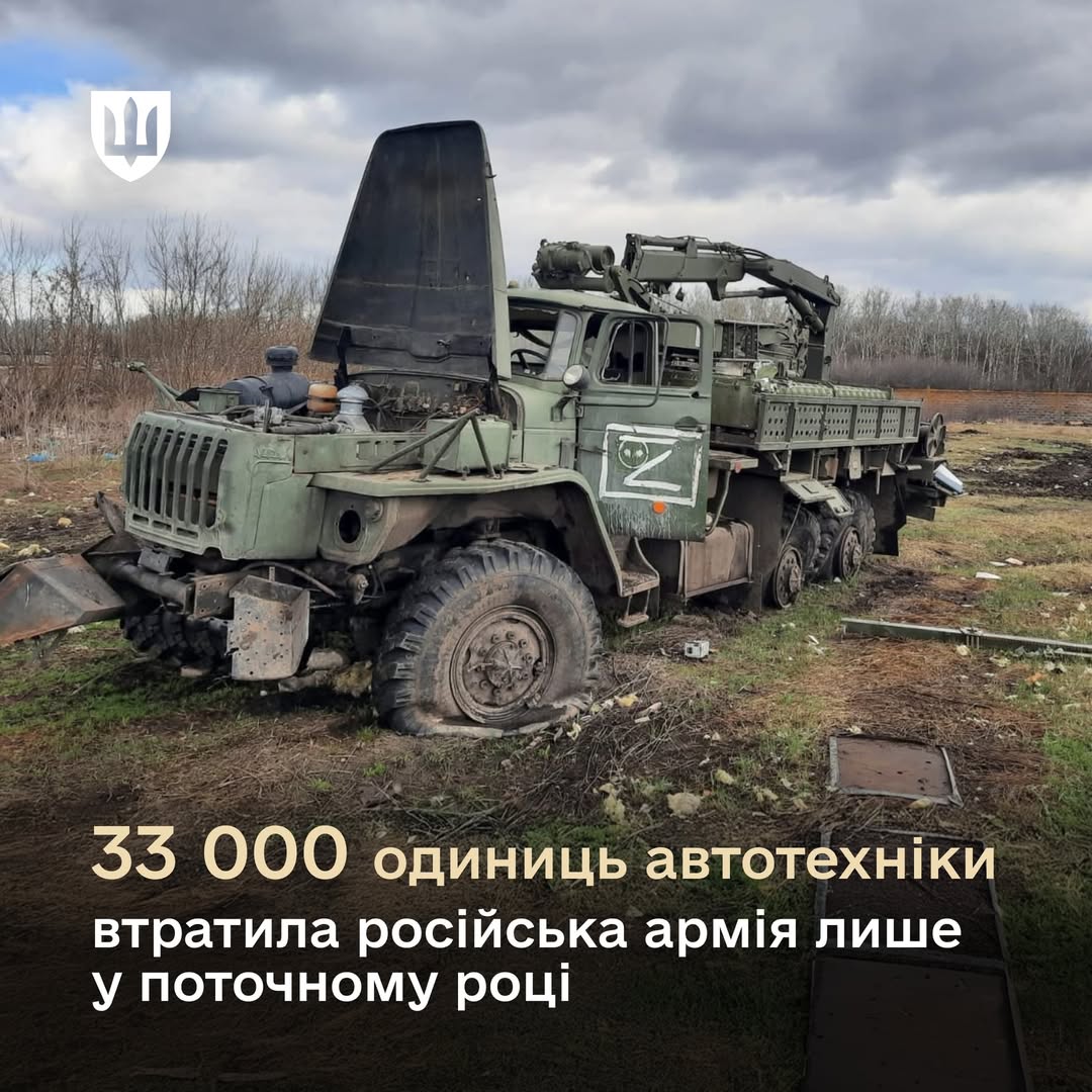Згідно з даними Генштабу ЗСУ, у поточному році Сили оборони України знищили 32 681 одиницю ворожої техніки. Це більше, ніж за три попередні роки разом узяті. «З початку року Сили оборони уразили вже 32 681 одиницю ворожої автотехніки», – зазначає Генштаб ЗСУ. У 2022 році було втрачено 4 720 автотранспортних засобів та автоцистерн. У 2023 році ця кількість зросла до 6 610 одиниць. Минулого року армія рф втратила 21 345 автомобілів.