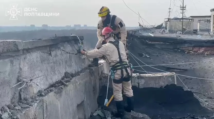 У Полтаві рятувальники-верхолази провели демонтаж частин перекриття на верхньому поверсі житлового будинку, який був пошкоджений внаслідок російського удару. Кожен крок вимагав максимальної концентрації та злагодженості.