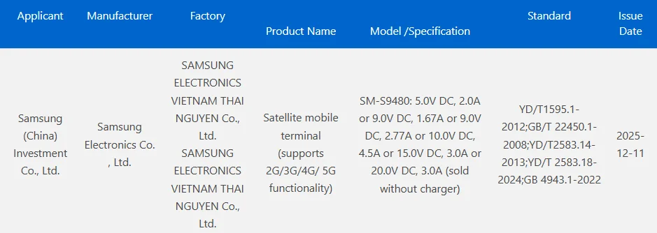 Як засвідчено в списку 3C, також доступний супутниковий зв’язок, як і в попередньому S25 Ultra для Китаю. Лише S26 Ultra з ймовірністю отримати можливість 60 Вт зарядки, тоді як S26 Plus підтримуватиме 45 Вт. Щодо стандартного S26, зарядка може бути 25 Вт або 45 Вт.