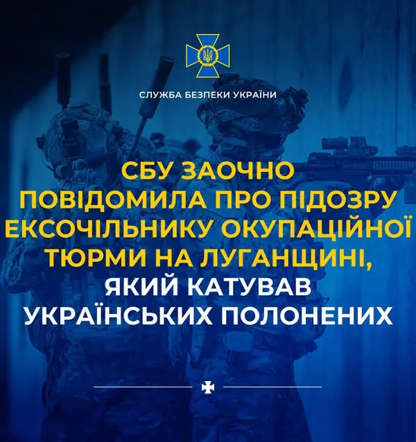 Служба безпеки України заочно повідомила про підозру ексочільнику тюрми на Луганщині, обвинуваченого у катуваннях полонених. Слідство встановило, що він був працівником «виправної колонії № 4 по лнр» і з жовтня 2022 по січень 2024 року був її керівником.