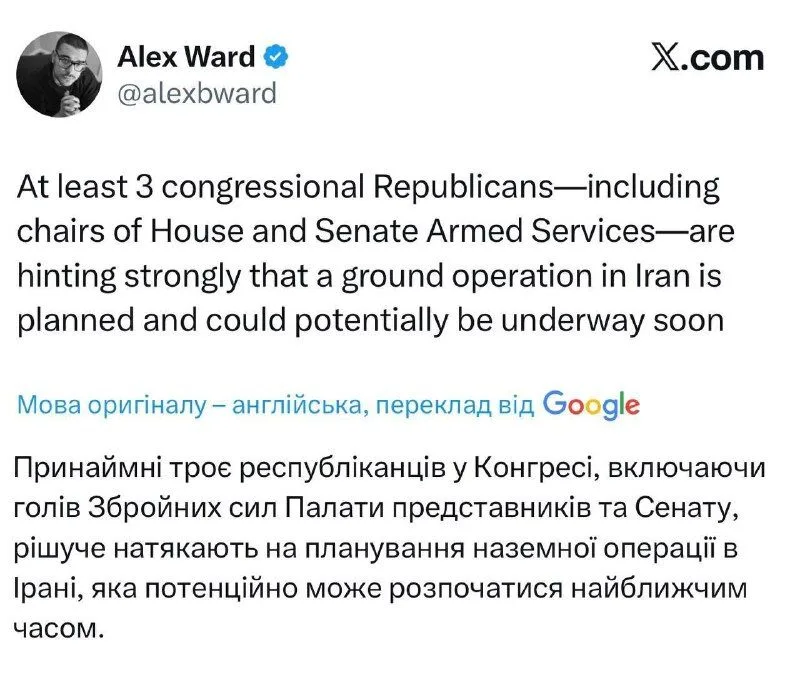 За даними WSJ, США готуються розпочати наземну операцію в Ірані найближчим часом. Це може стати важливим етапом у розвитку подій у регіоні.