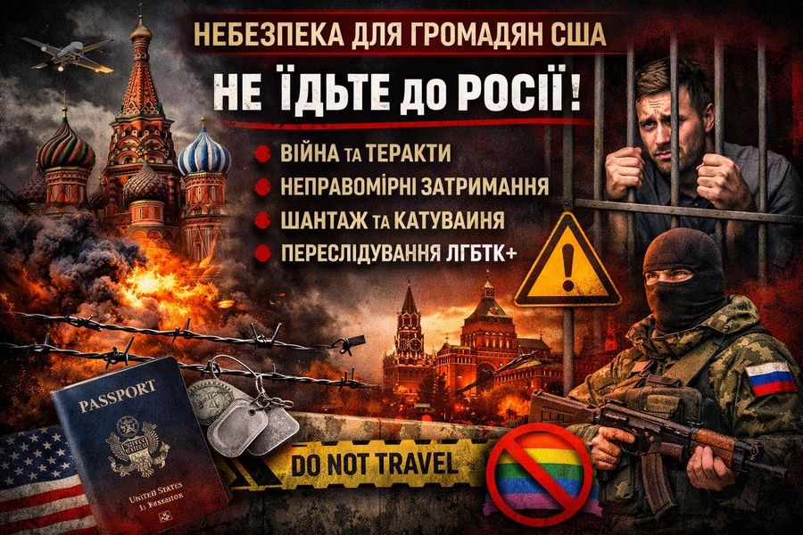 Мандрівка до Росії є надзвичайно небезпечною для громадян США. Попри відсутність змін у рівні застереження, ризики значно зросли — від терактів і мобілізації до незаконного затримання та катувань.