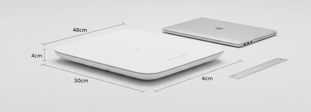Gen 2 was 60×50 cm and weighed 4.2 kg. Gen 3 is 48×30 cm and weighs 2.9 kg. That’s 30% smaller and lighter. Sounds minor until you’re the one carrying it up a ladder or trying to mount it on an RV roof. Plus it’s easier to find mounting spots.