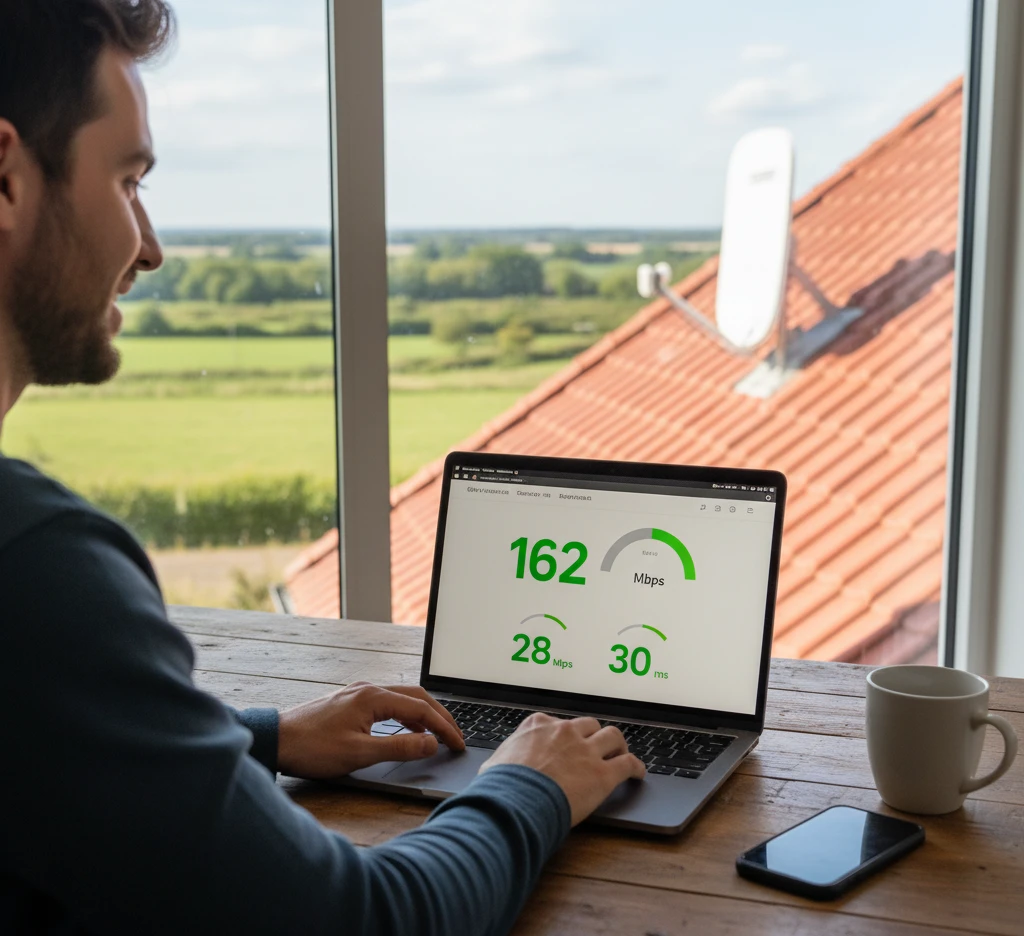 At my cousin’s farm, speed tests typically show 140-160 Mbps down. His kids stream Netflix on three different devices while he’s on Zoom calls — no buffering, no lag. That was impossible with their old satellite internet or the spotty cellular signal.