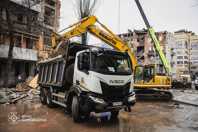 На центральну частину Харкова було завдано удар російськими військами, що призвело до зруйнування торгівельно-офісної будівлі та частини під’їзду багатоквартирного будинку. Залучені рятувальники, кінологічні розрахунки та важка техніка ДСНС, а також комунальні служби міста. Вночі знайшли тіла двох загиблих, серед яких була дитина. Вже вивезено понад 3100 тонн бетонних та металевих конструкцій.