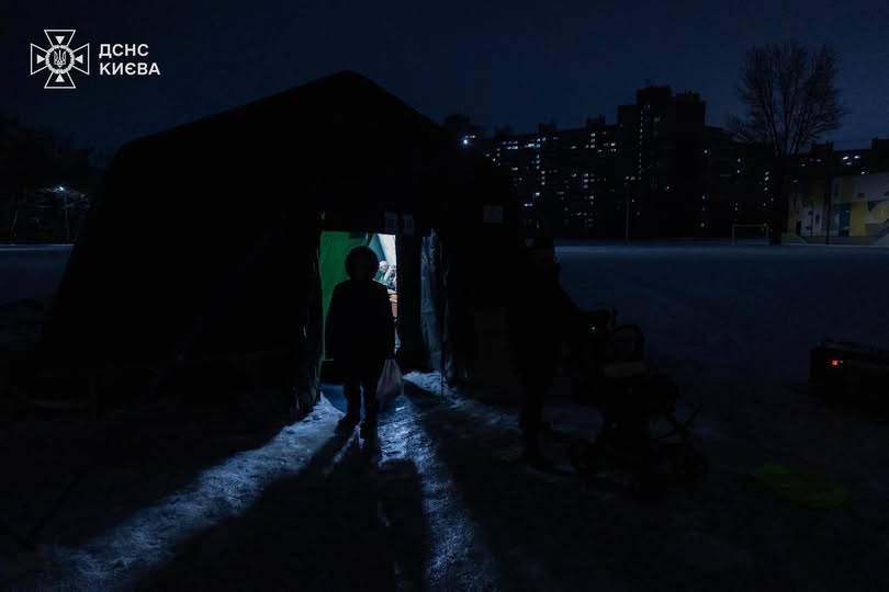 З приходом темряви мешканці Києва знаходять тепло та світло у наметах рятувальників, яких відкрито 104. У цих пунктах допомагають людям, залишеним без тепла через дії росії, знайти безпеку та комфорт.