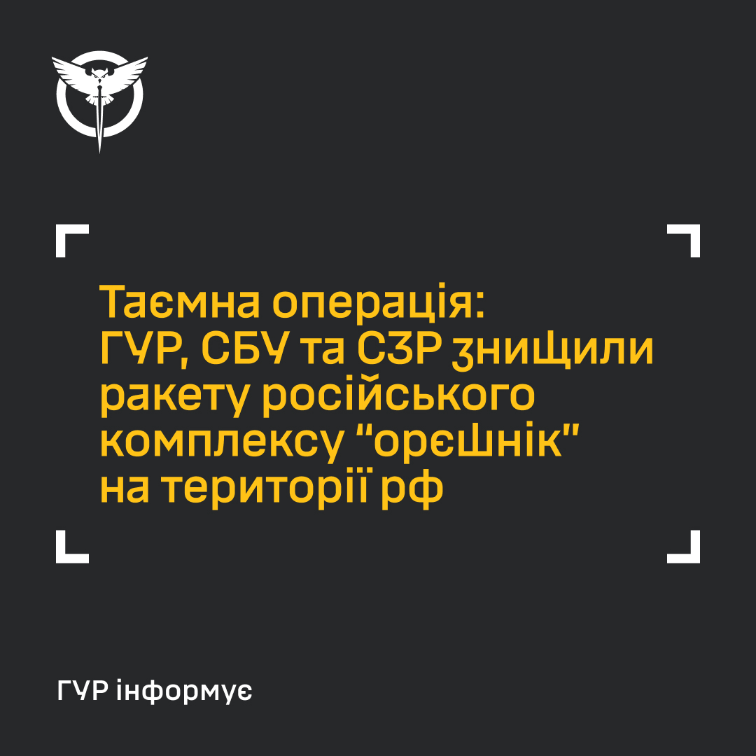 У ніч з 8 на 9 липня 2024 року на полігоні “капустін яр” в рф було знищено балістичну ракету комплексу “орєшнік”. Спільну операцію реалізували Головне управління розвідки Міністерства оборони України, Служба безпеки України та Служба зовнішньої розвідки.