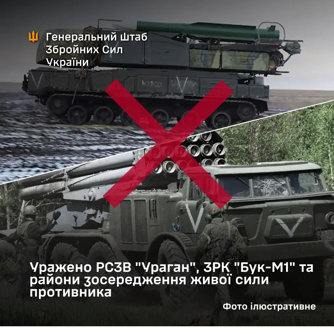 ⚡️⚡️Уражено РСЗВ “Ураган”, ЗРК “Бук-М1” та райони зосередження живої сили противника.