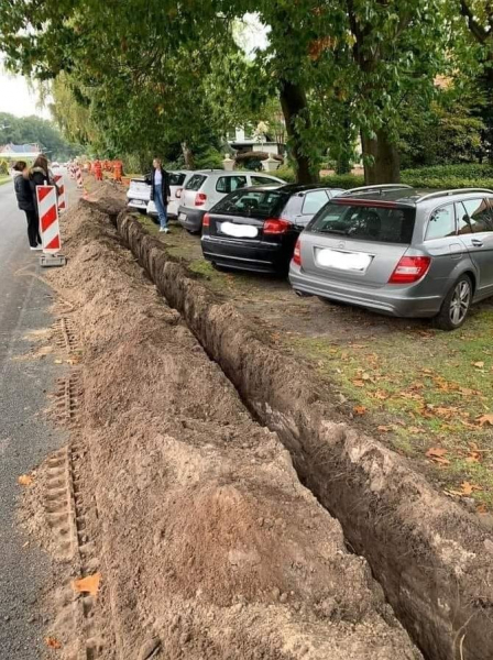 Так, користувач опублікував фото, на якому видно 5 припаркованих на зеленій зоні автомобілів. Уздовж “парковки” з’явився довгий рів – мабуть, комунальники постаралися, поки автомобілістів не було. Автор припускає, що рів вирили співробітники ДТЕК “Київські електромережі”.