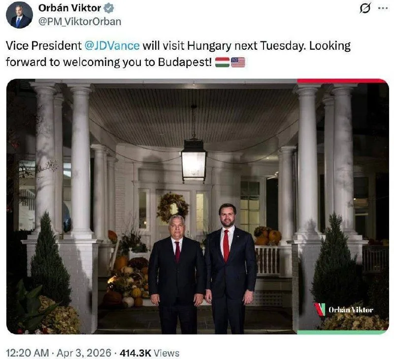 Віце-президент США Венс планує приїхати до Угорщини у вівторок перед виборами. За попередньою інформацією, Дональд Трамп не наважився самостійно приїхати до Будапешта для підтримки Орбана.