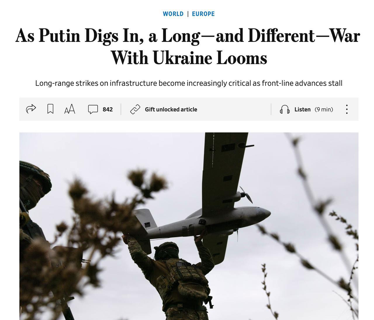 Як повідомив Ivan Zimbitskiy сьогодні The Wall Street Journal опублікував матеріал Russia is preparing for a drawn-out conflict that could last years or even decades.